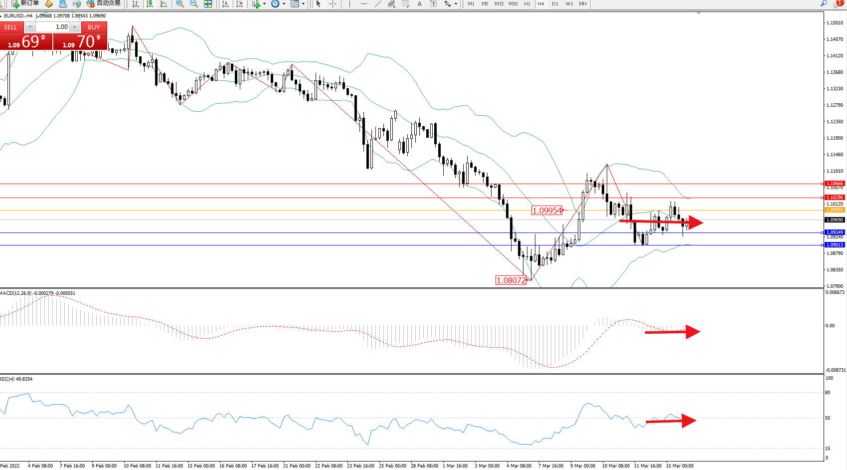 欧元兑美元维持1.09706附近震荡,欧洲经济和欧元对乌克兰战争和油价特别敏感。德国商业银行报告中表示,油价下跌反映出俄乌谈判可能即将带来和平解决方案的希望。