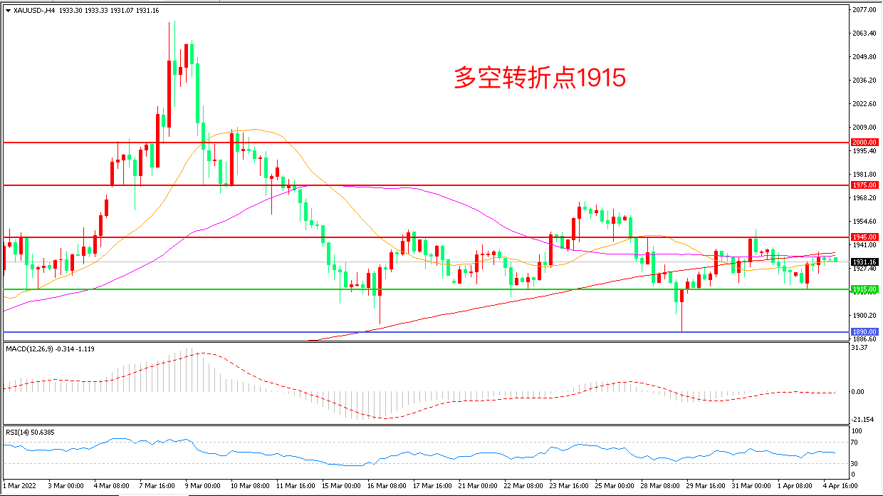 备选策略:在1915.00之下看跌,目标1890.00 1865.00