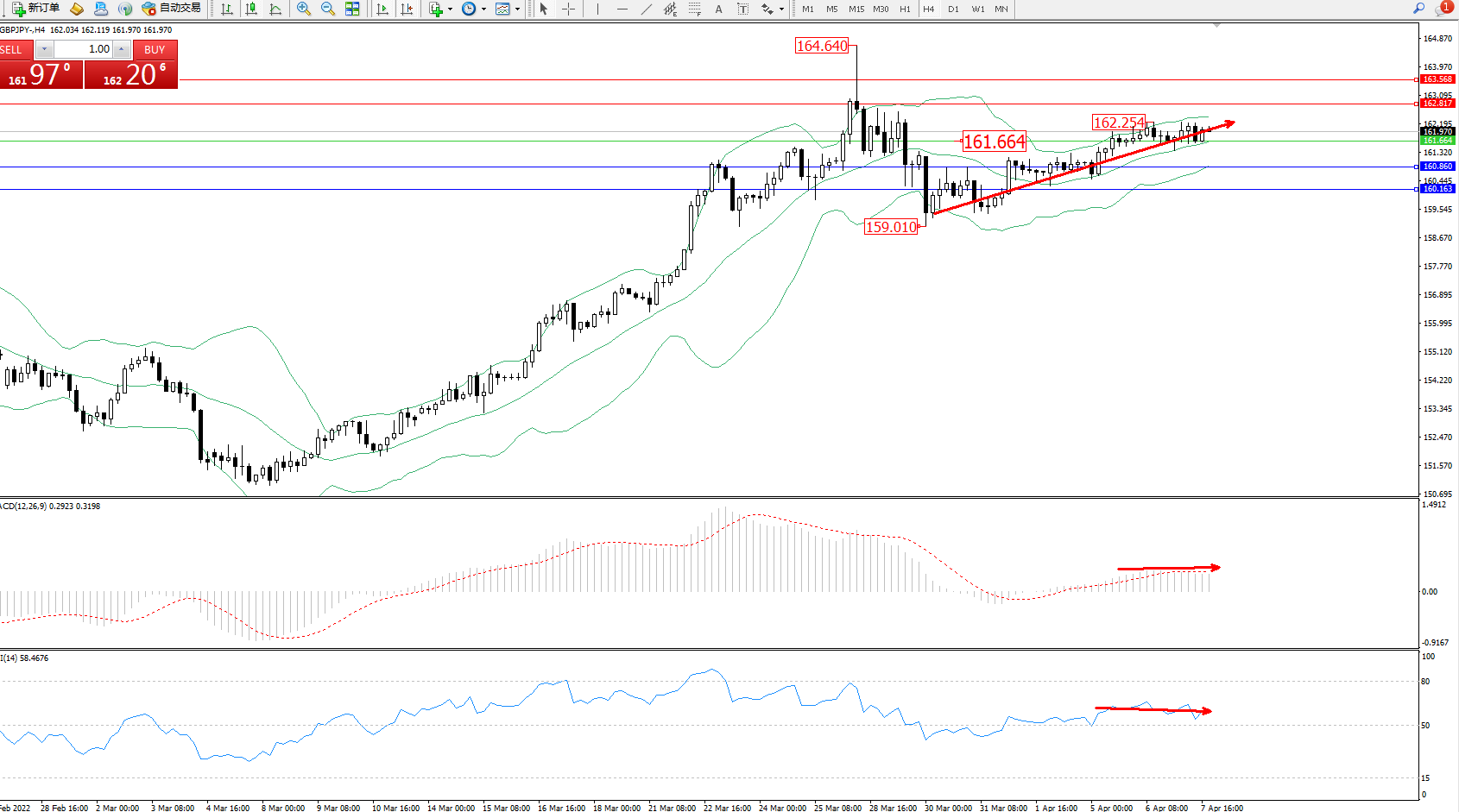 交易策略:161.664上方看涨,目标162.817、163.568