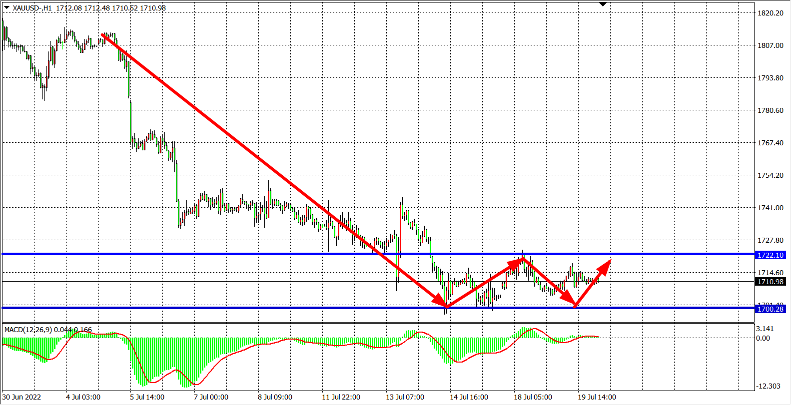 交易策略:在1722.00之下看跌,目标1690.00          1670.00