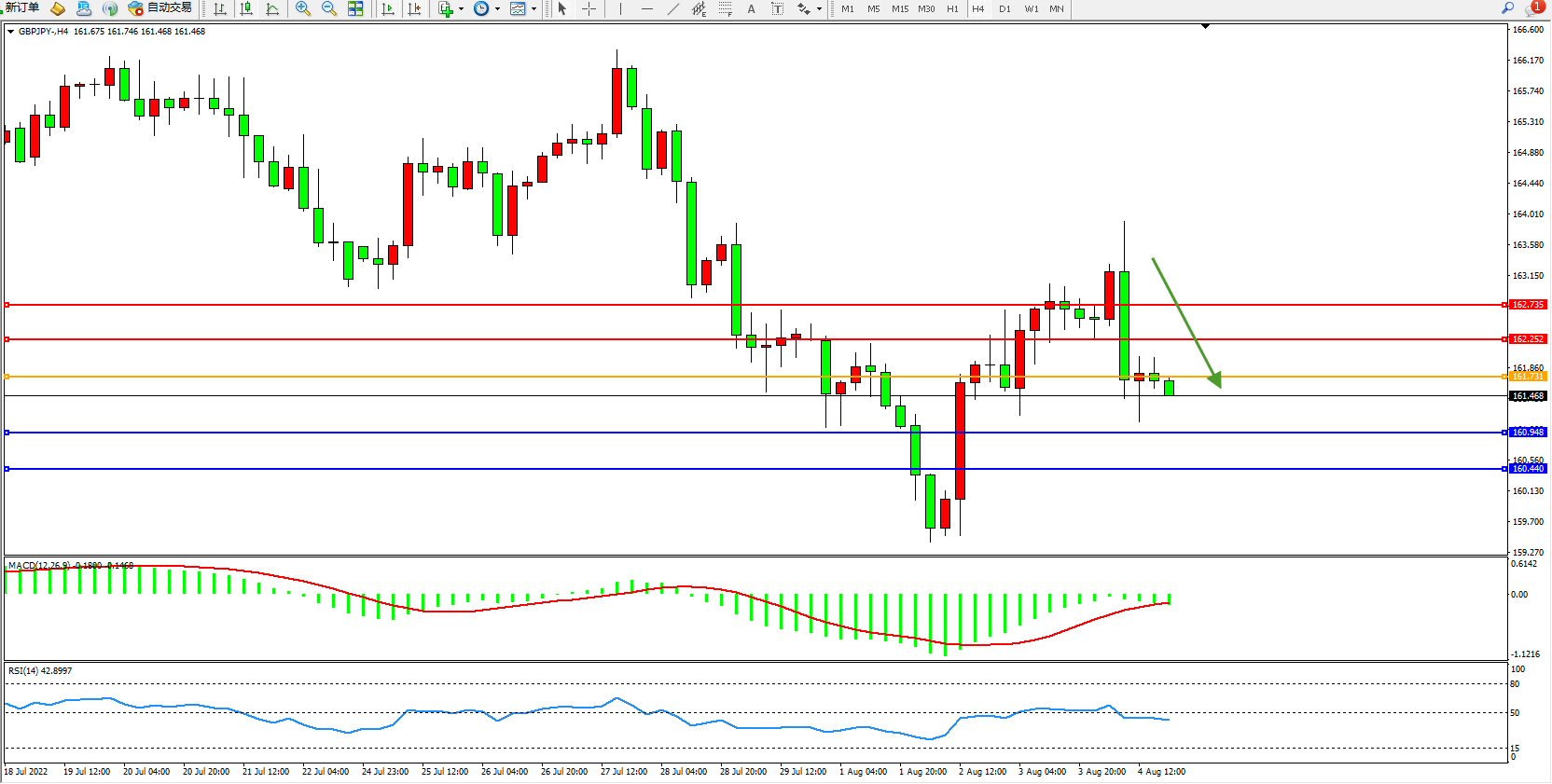 备选策略:161.731上方看涨,目标162.252、162.735