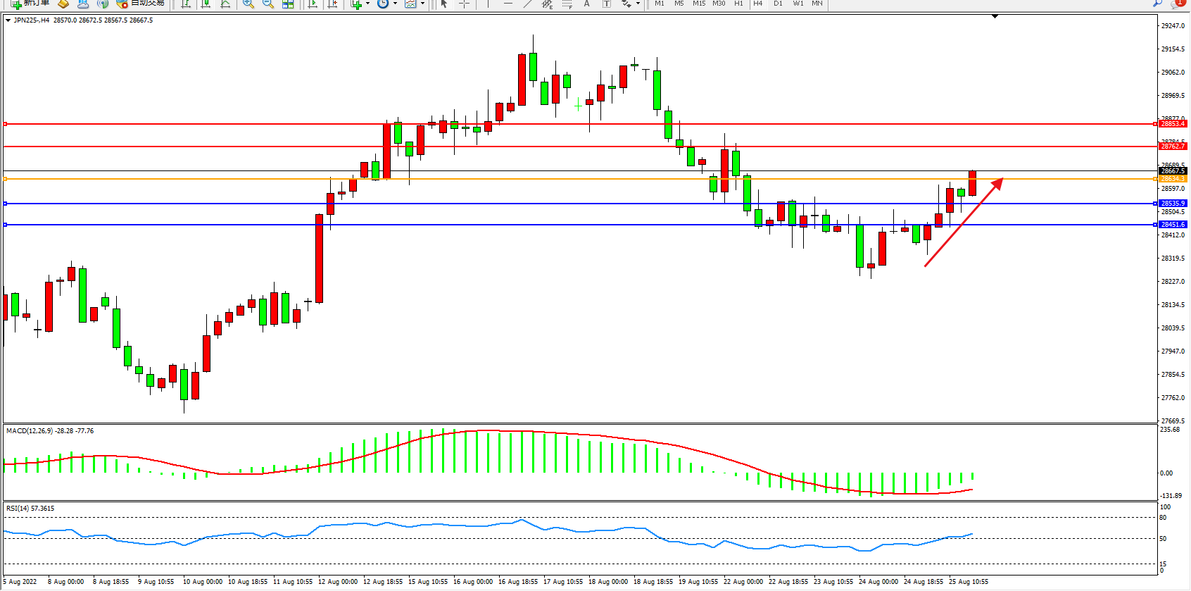 日经225指数8月25日(周四)收盘上涨178.03点,涨幅0.63%,报28491.50点。日本政府在月度经济报告中认为经济“适度回暖”,对经济的总体评估与前月保持不变,同时上调对工厂产出的看法。