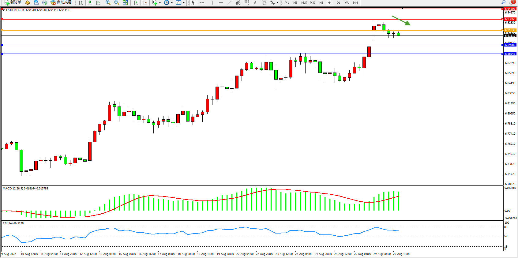 备选策略:6.91839上方看涨,目标6.93366、6.94809