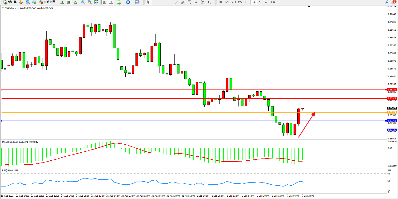 交易策略:0.67574上方看涨,目标0.67923、0.67141
