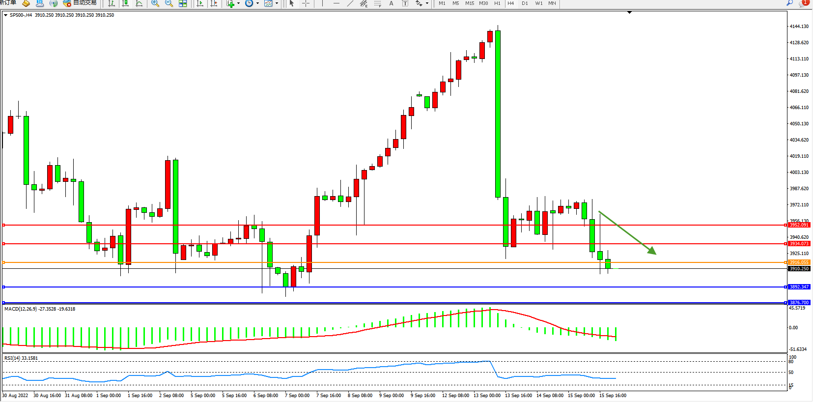交易策略:3916下方看跌,目标3892、3876