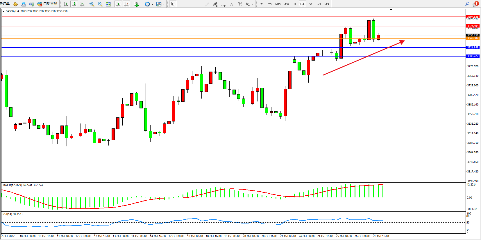 标普500指数10月26日(周三)收盘下跌28.00点,跌幅0.73%,报3831.11点;市场预计下周加息75个基点后,美联储加息步伐可能会放缓。