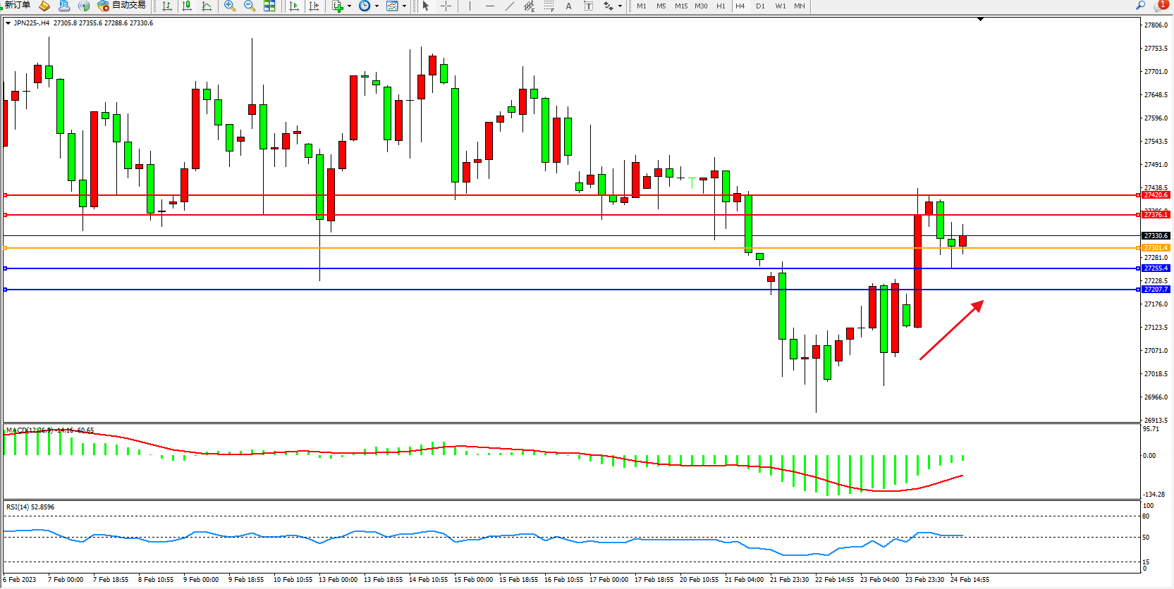 日经225指数2月24日(周五)收盘上涨328.18点,涨幅1.21%,报27432.50点。日本半导体制造设备协会(SEAJ)的数据显示,1月日本造半导体制造设备的销售额(3个月移动平均,快报值)比上年同月减少2.1%,降至2997亿日元。