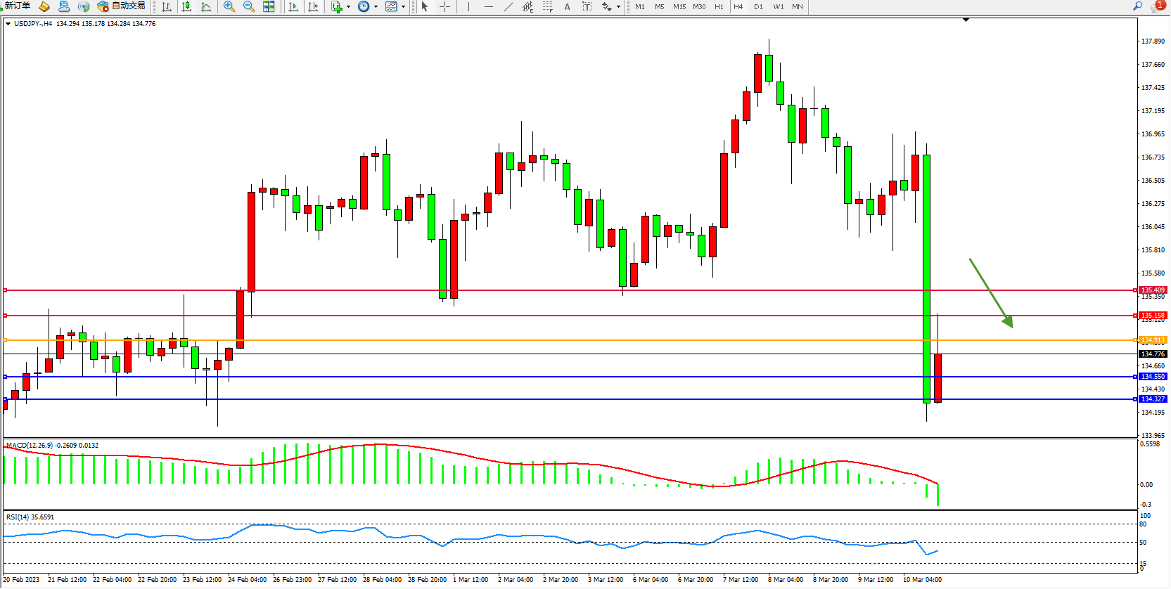 交易策略:134.913下方看跌,目标134.550  134.327