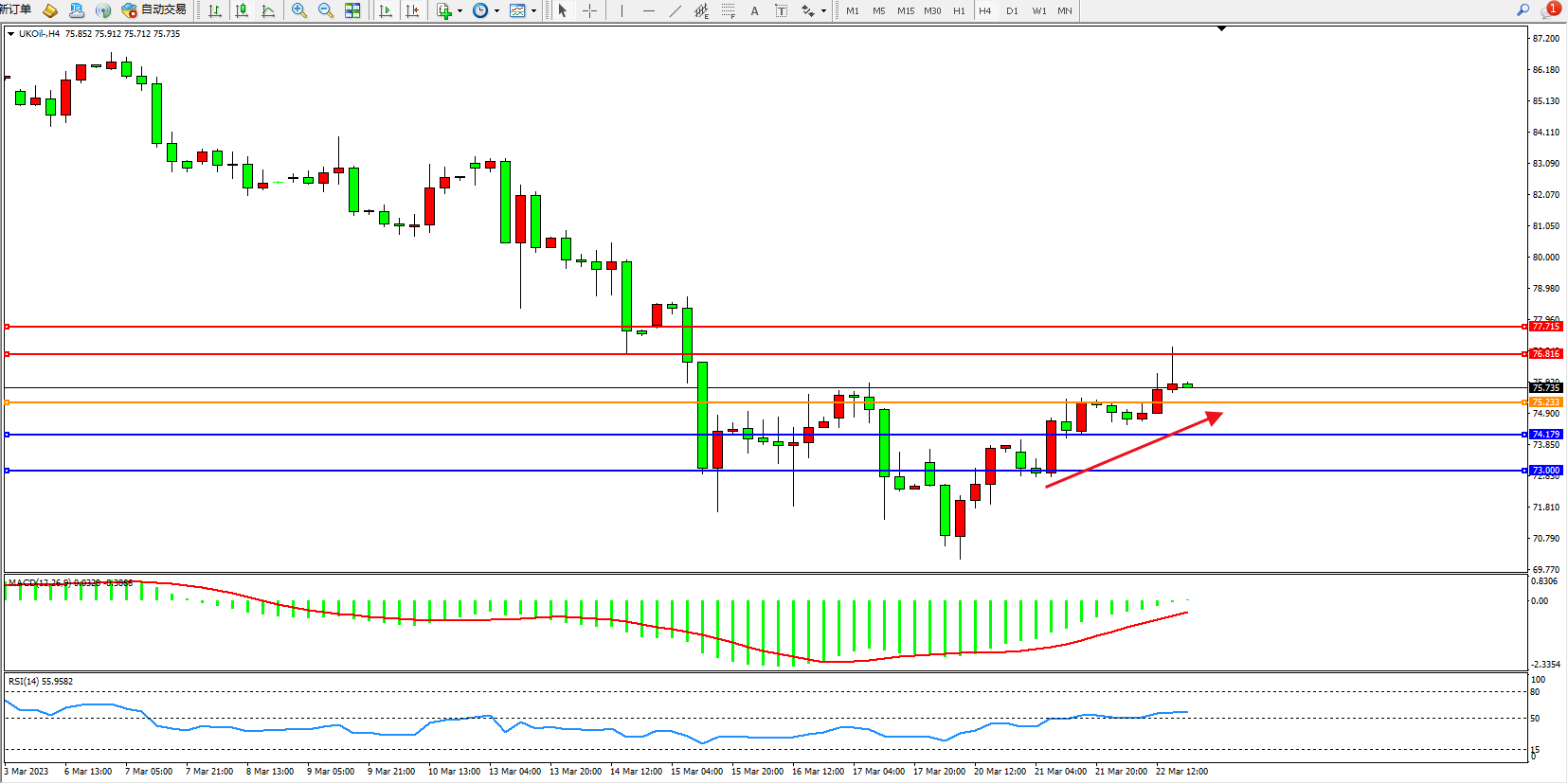 布油维持75.735附近震荡,美国至3月17日当周EIA原油库存 111.7万桶,预期-156.5万桶,前值155万桶。EIA俄克拉荷马州库欣原油库存 -106.3万桶,前值-191.6万桶。