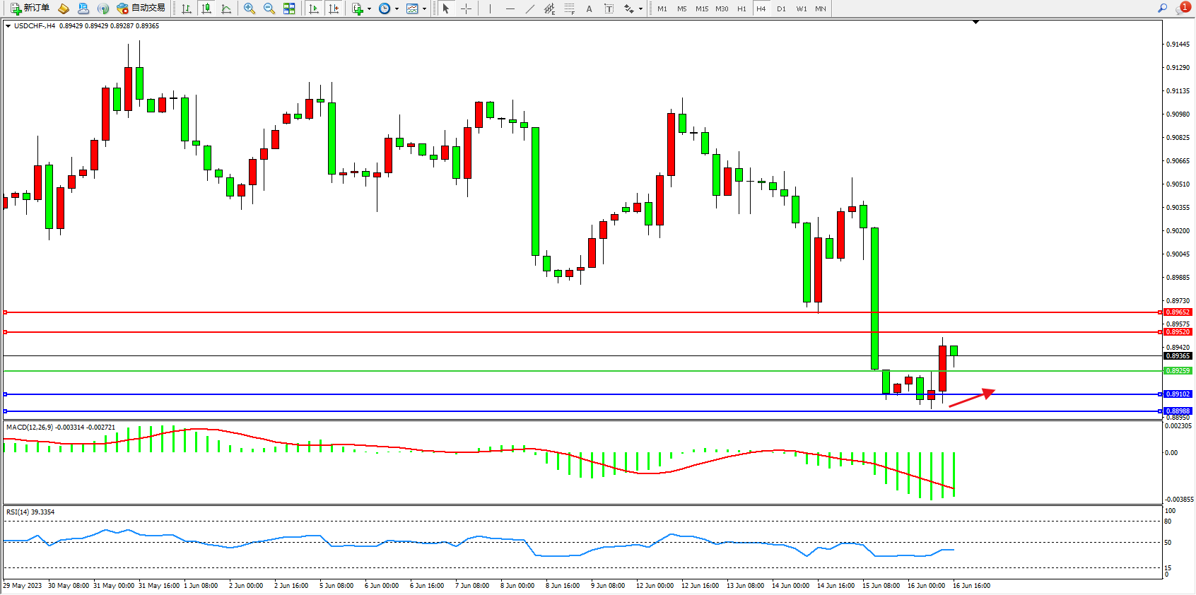 交易策略:0.89259上方看涨,目标0.89520  0.89652