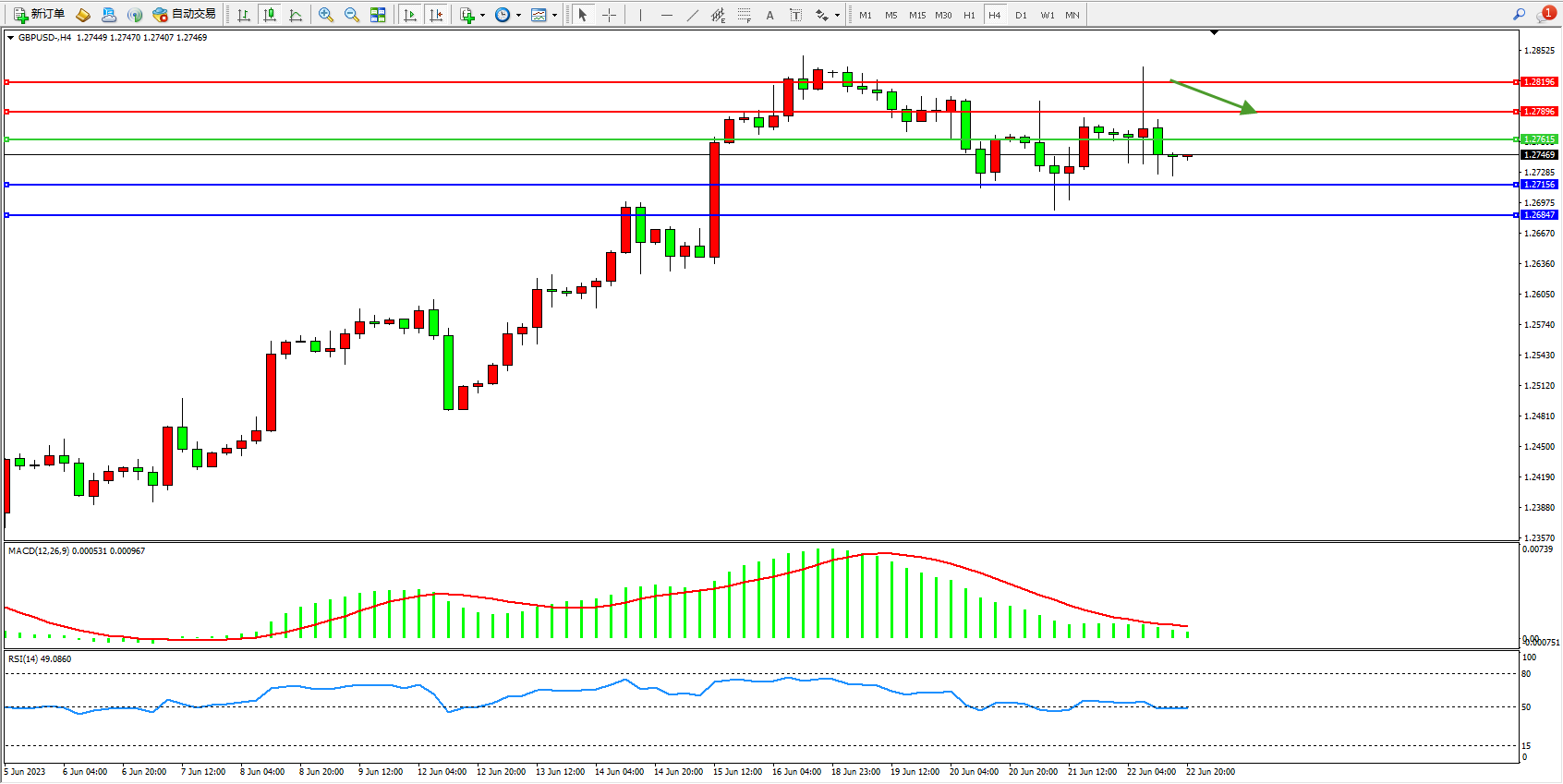 交易策略:1.27615下方看跌,目标1.27156  1.26847