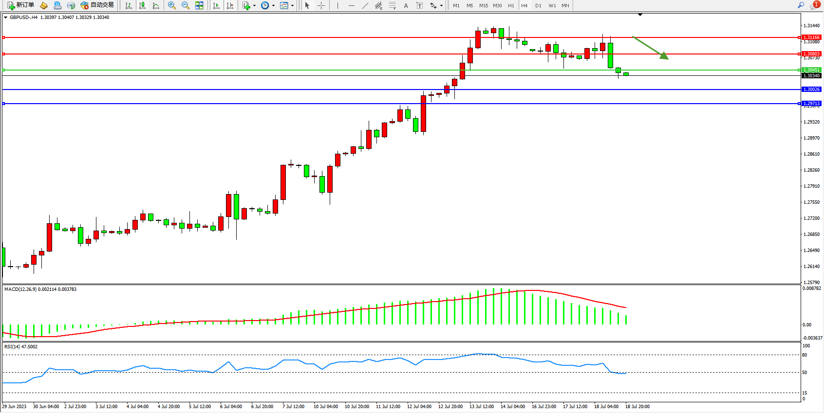 备选策略:1.30451上方看涨,目标1.30803  1.31166