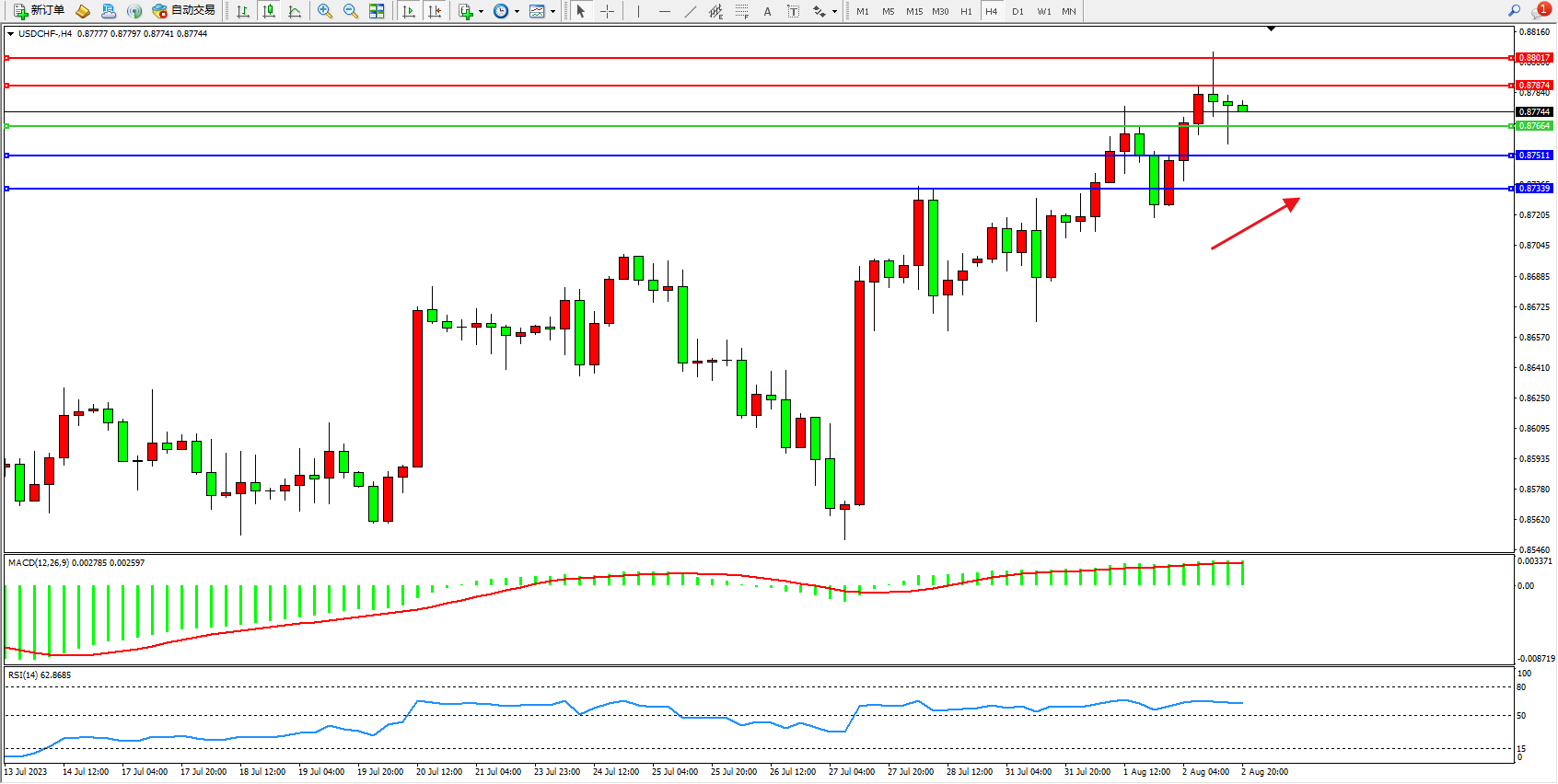 交易策略:0.87664上方看涨,目标0.87874  0.88017