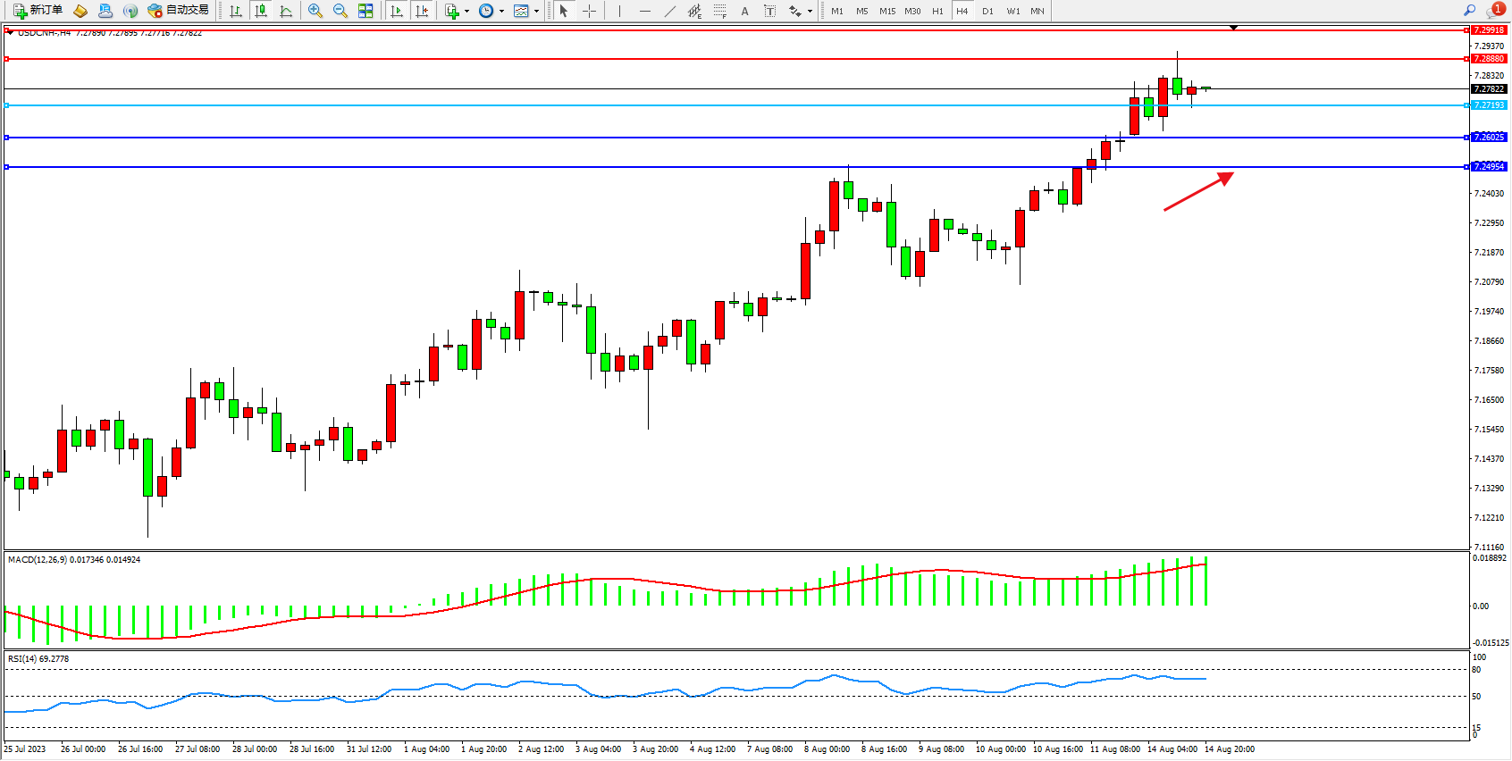 交易策略:7.27193上方看涨,目标7.28880 7.29918