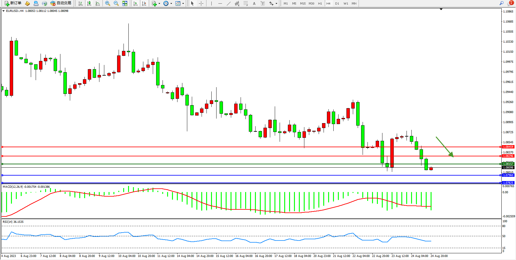 交易策略:1.08157下方看跌,目标1.07960  1.07825