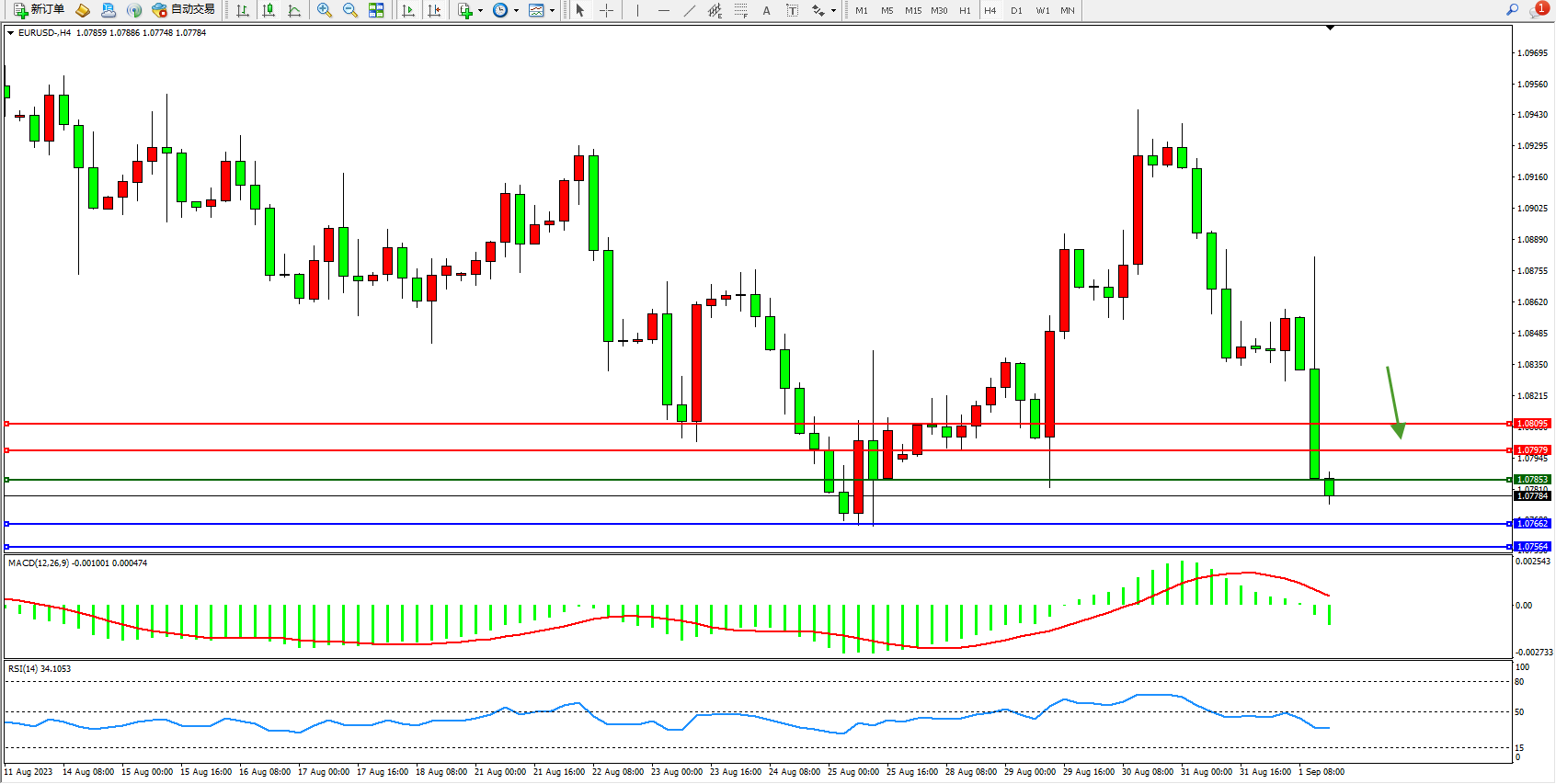 欧元兑美元维持1.07784附近震荡,欧元区制造业在第三季度中期仍面临巨大压力,新订单大幅下降,积压工作迅速消耗殆尽,给整个地区的生产线造成了相当大的压力。
