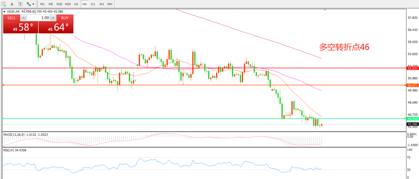 交易策略:在46.00之下看跌,目标42.00  38.00