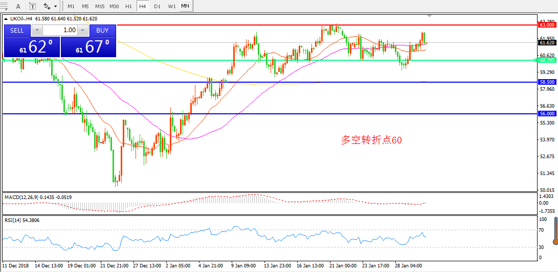 交易策略:在60.00之上看涨,目标63.00   67.00