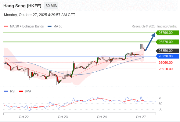 在 26220.00 之上,看涨,目标价位为 26570.00 ,然后为 26790.00 。