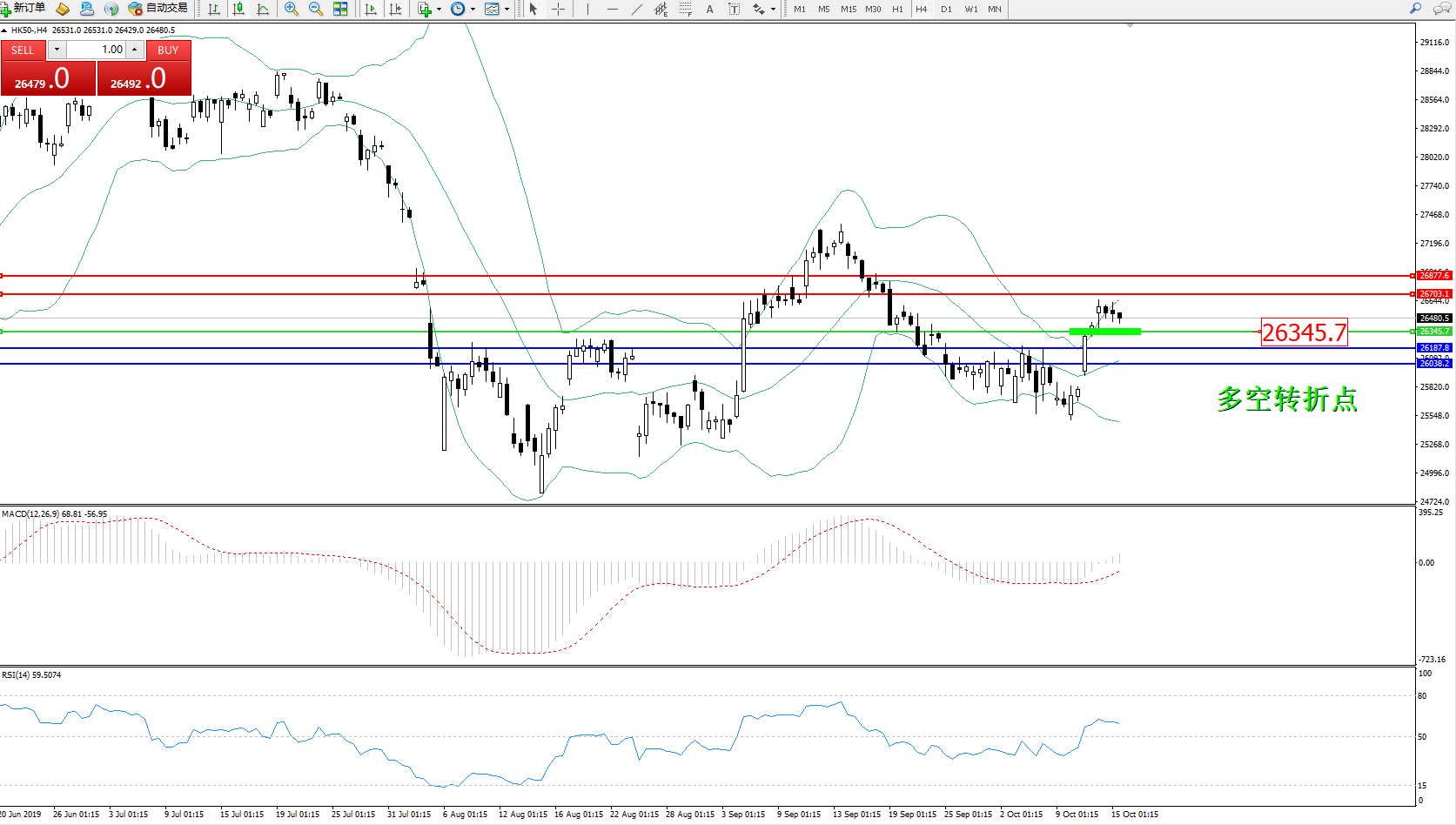香港恒生指数1015日(周二)收盘下跌17.92点,跌幅0.07%,报26503.93点;截至今日收盘,恒指大市成交额为756.82亿港元(上一交易日成交额为903.47亿港元)。港股早上高开87点,恒指高见26609,随后再逐步回落至倒跌,续在升跌附近横行。受益贸易关系以及中国政府多项利好政策提振下港股近期走势偏强。现外围市场大涨过后有整固需求也给恒指带来一定制约,好在十月份是三季度业绩公布密集阶段,有良好业绩支撑的企业有望给市场点燃做多动力。