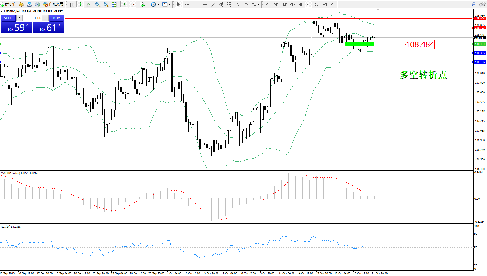 全球贸易利多和英国脱欧乐观前景令避险货币日元的买需受压,但另一方面美元的持续疲软又限制了汇价上行,而美元兑日元在109关口也依旧面临着强大的趋势阻力;市场正在急切观望着本周英国脱欧局势的进一步进展。虽然脱欧协议表决遭到推迟,但眼下,英国硬脱欧的概率已经大大降低,1031日之前突击达成协议的几率犹存。在此状况下,市场悲观情绪很难过度发酵,美元兑日元仍将在高位震荡后,伺机寻觅突破方向。