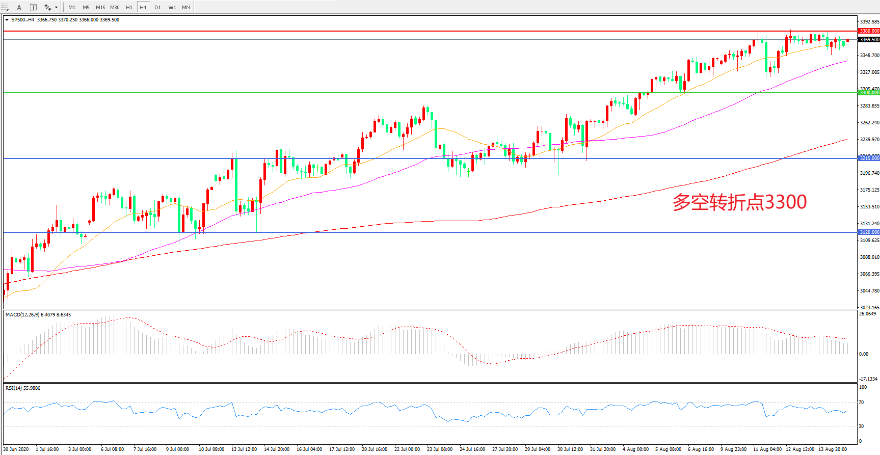 上周五(8月14日),受美国好坏参半的经济数据及对美国新一轮经济刺激计划的观望情绪影响,美股三大指数走势震荡,标普500小幅回落,收报3361.50点。上周标普500指数多次试图突破2月所创历史高点,但均未成功,这是市场明显疲惫的征兆。