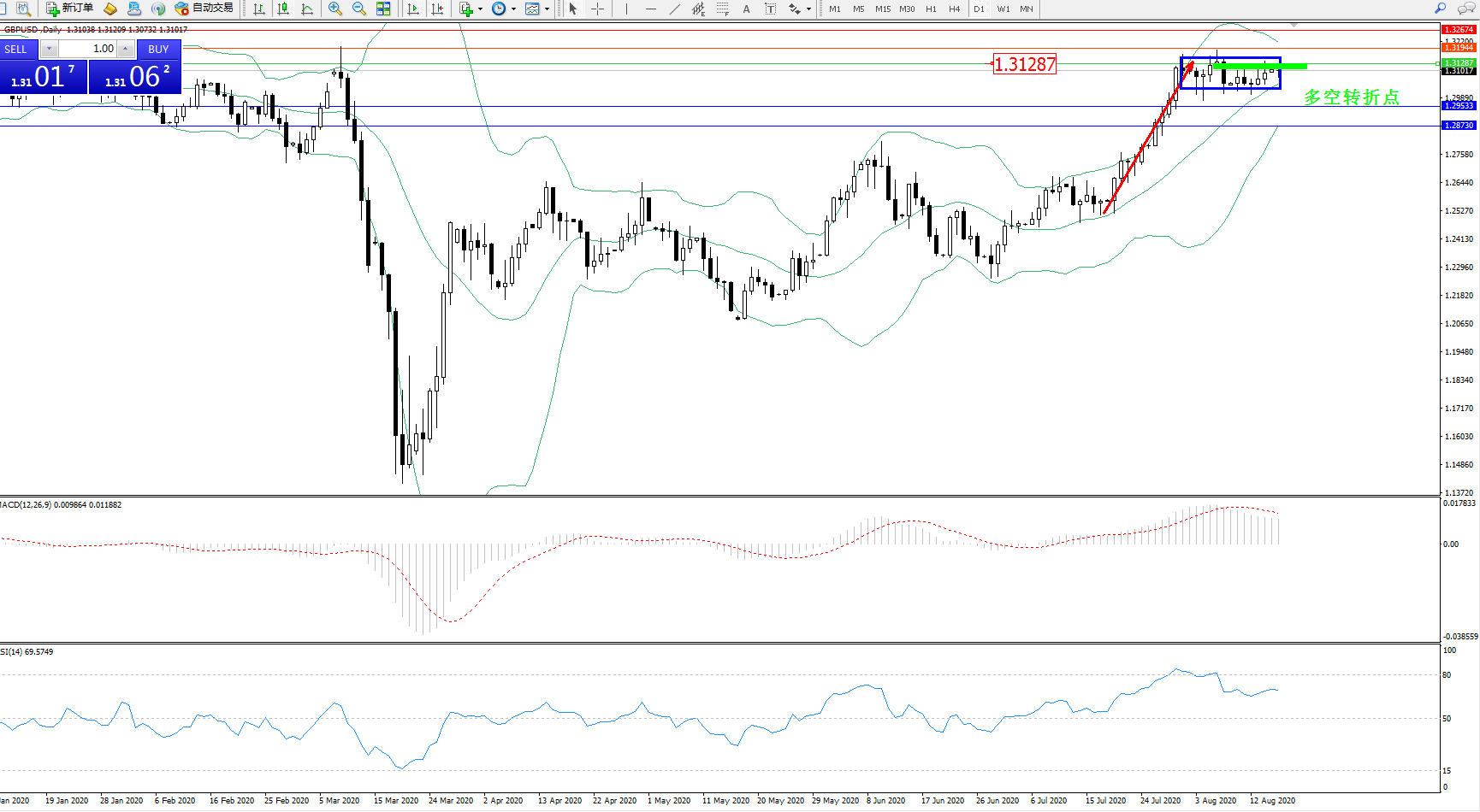 备选策略:1.31287上方看涨,目标1.31944、1.32674