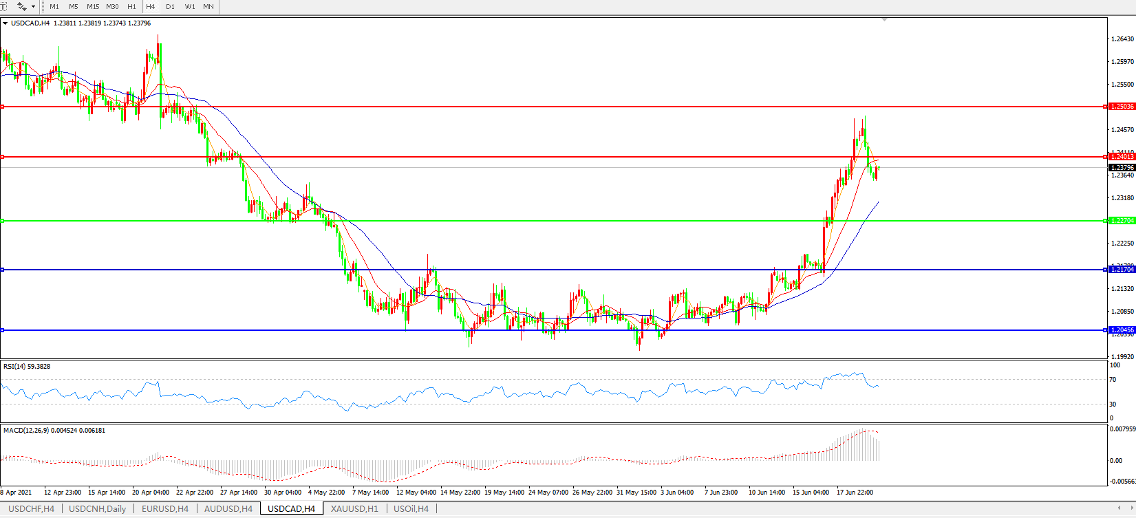 美元兑加元USDCAD    4小时图: