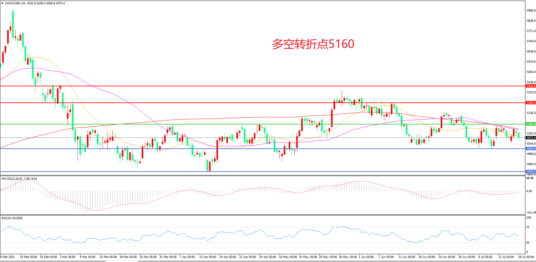 上周五(7月16日),A股三大股指全线低开,临近午盘有一波拉升,后股指再度转弱,沪深300加速回落,收报5073.4点。两市成交量继续保持在1.1万亿级别,北向资金净卖出40亿。从近期市场趋势看,沪深300在5135附近承压明显,始终无法向上进行有效突破,再加上北向资金也同步开始流出,说明该位置附近抛压明显,意味着短期指数有再度向下回探5000点整数支撑的需求。