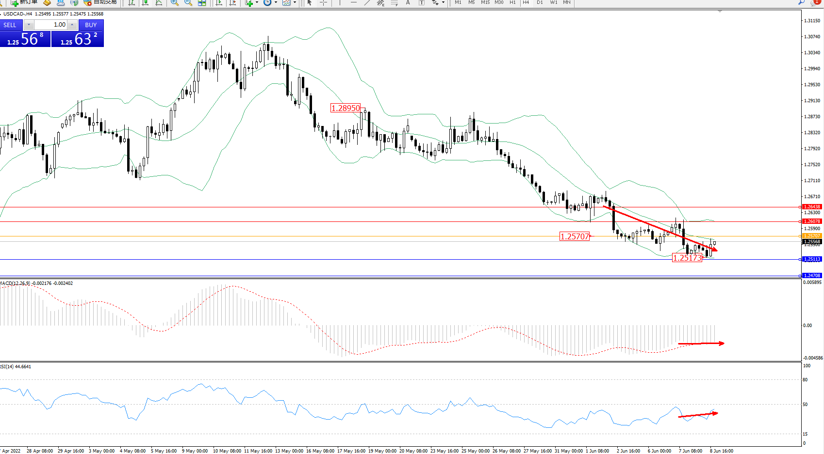 技术点评:空头动力延续布林带指标通道中下轨区间持续震荡缓慢下行,低位抵达1.25173附近节点后有继续向下移动态势,布林带指标低位弱势缓慢有收口迹象,MACD指标处于空头区域维持弱势徘徊,RSI指标处于空头区域维持窄幅整理;