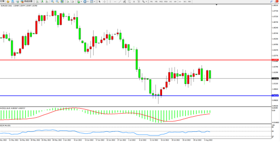 低位多头动力缓慢拉升后开始窄幅整理平移,上方压制关注1.03391附近,低位支撑关注1.00229附近,低位多头有时机入场迹象,MACD指标处于空头区域维持窄幅整理上移,RSI指标处于50均衡线附近弱势徘徊;如图: