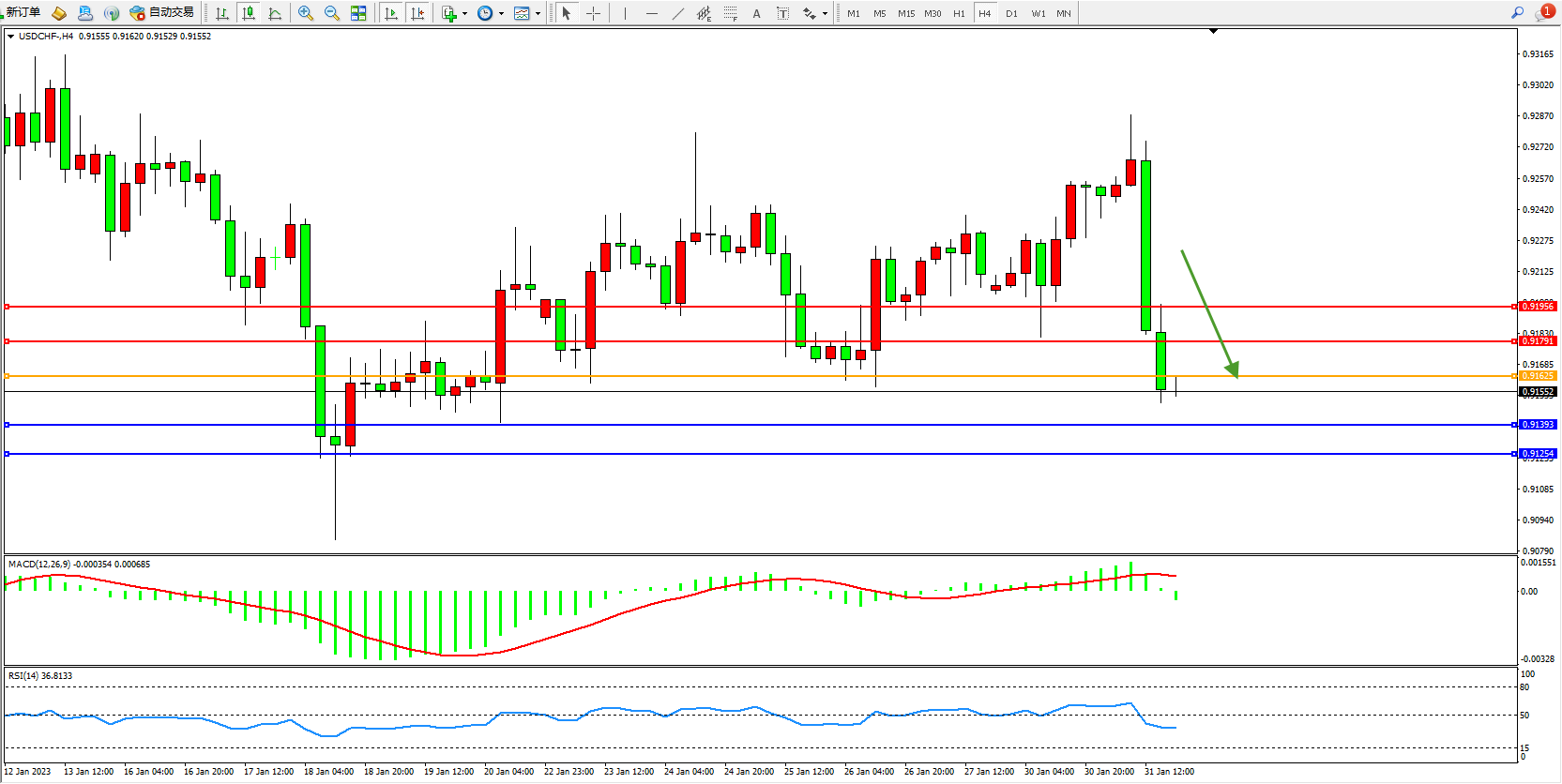 交易策略:0.91625下方看跌,目标0.91393、0.91254