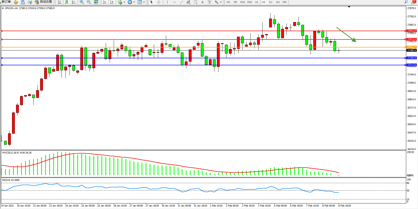 日经225指数2月8日(周三)收盘下跌85.97点,跌幅0.31%,报27599.50点。日本电子零部件企业业绩踩下急刹车,预计8家大型企业的2022财年(截至2023年3月)净利润合计同比下降19%,降至7820亿日元,3年来首次陷入利润下滑。