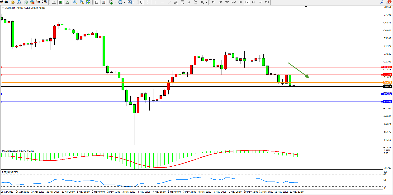 原油维持70.036附近震荡,人们对全球最大石油消费国美国将陷入衰退的担忧增加,关于债务上限的磋商被推迟,且对另一家受危机影响的地区性银行的忧虑加剧。