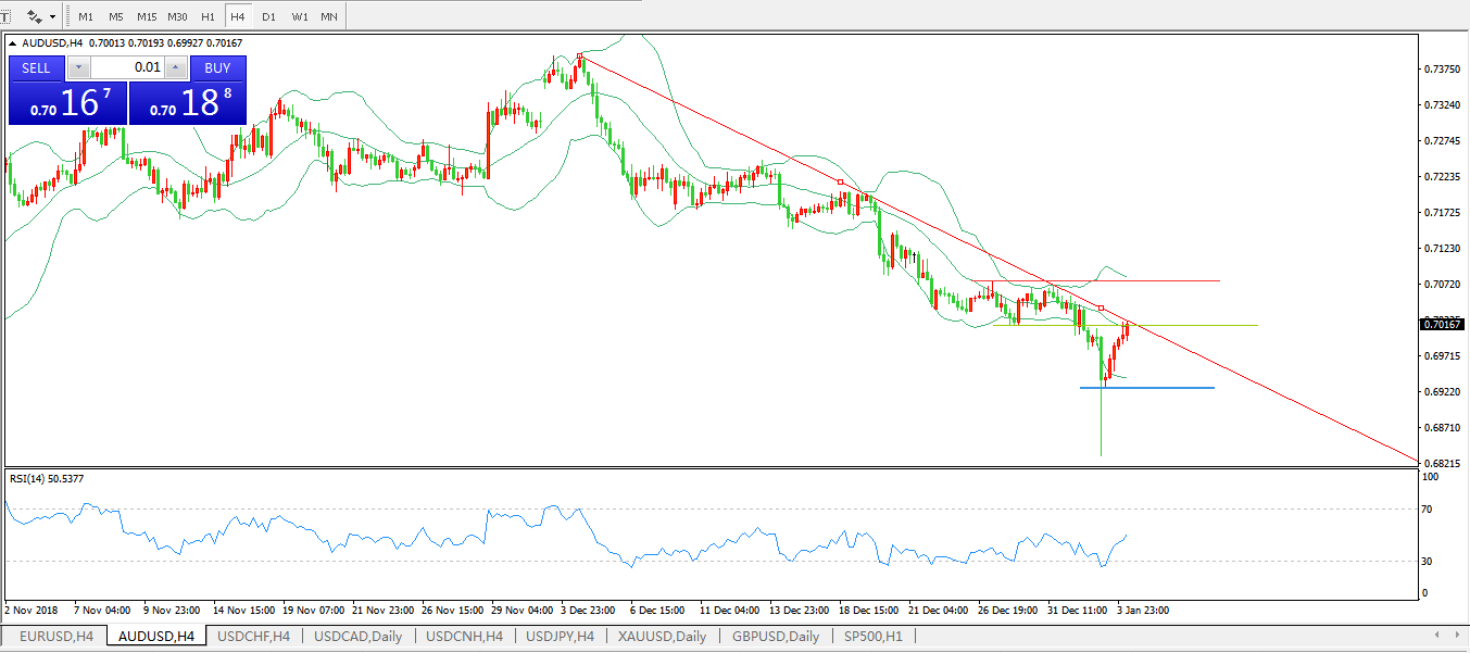 交易策略:在0.7015之下,看跌,目标价位为0.6920,然后为0.6833